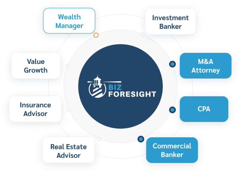 BizForesight connects business owners with a carefully vetted community of professional service providers, investment bankers, M&A attorneys, wealth managers, accountants, tax professionals, and lenders, who can help implement your chosen strategy.